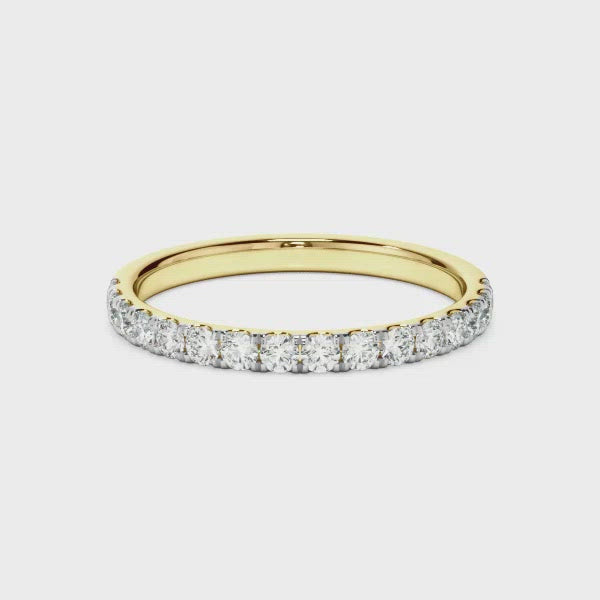 This stunning custom-made wedding ring features a half band of round brilliant cut diamonds set on an 18ct gold or platinum band. Exuding fluidity in its line work, and boasting an elegant silhouette, as with all the pieces in our Bespoke Collection, this piece is made especially for you.