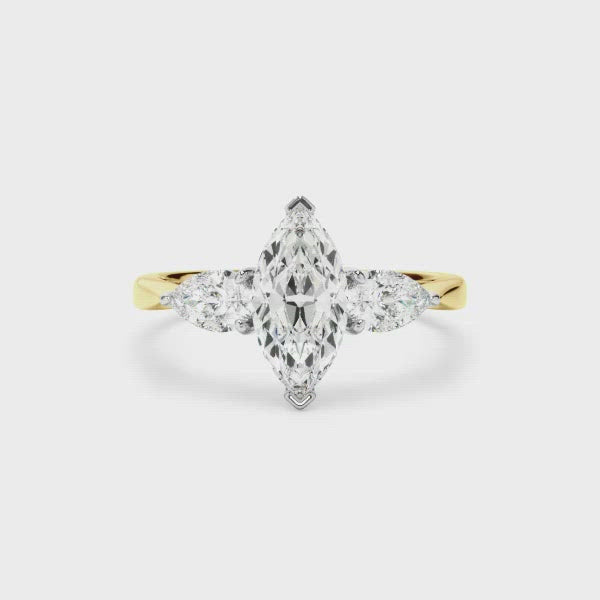 Marquise Cut Diamond Engagement Ring With Pear Cut Diamond Sides