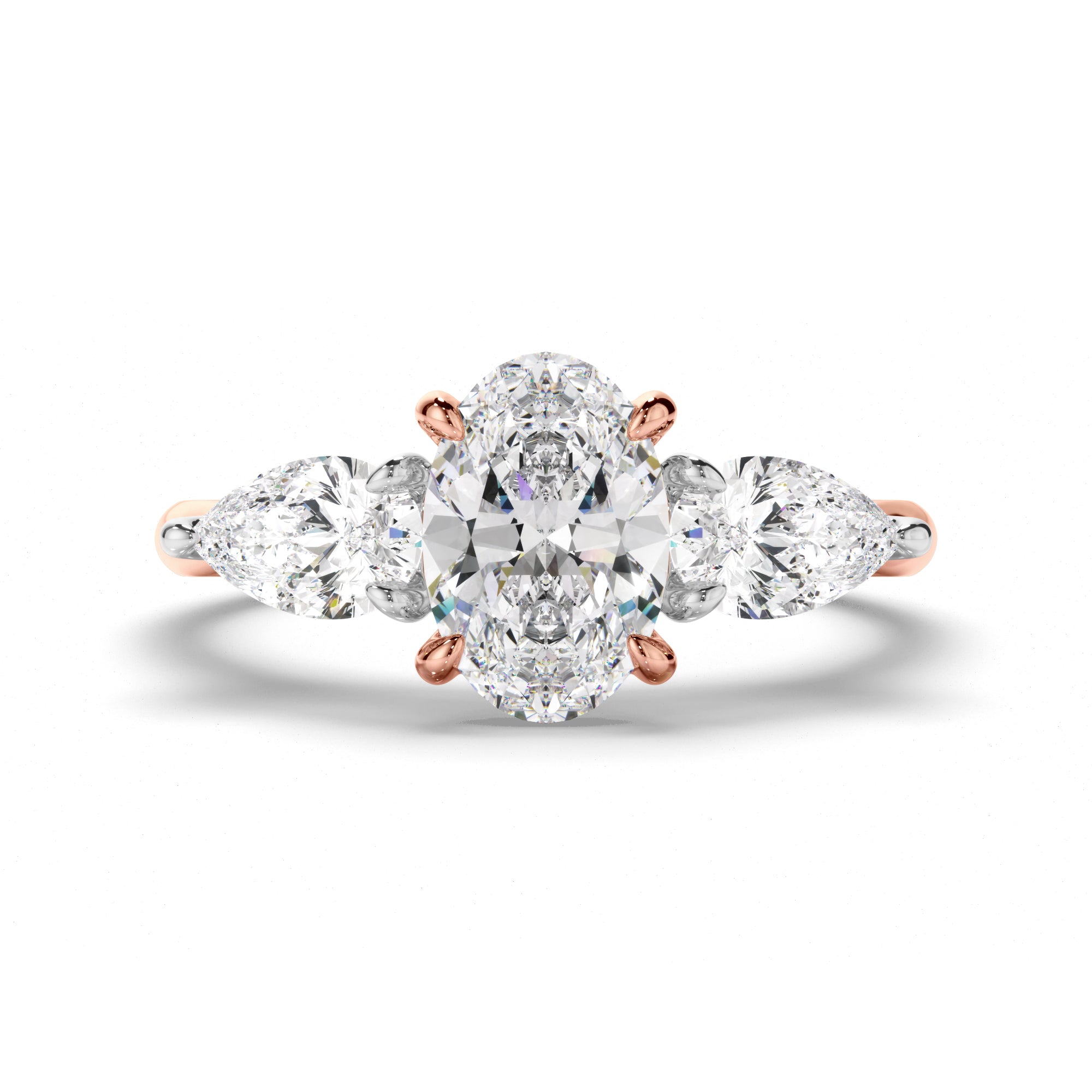 Oval Cut Diamond Trilogy Engagement Ring with Pear Sides