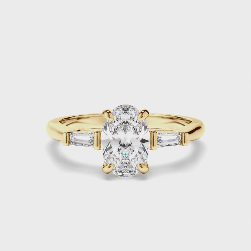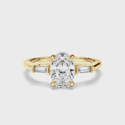 Oval Cut Diamond Trilogy Engagement Ring with Baguette Sides