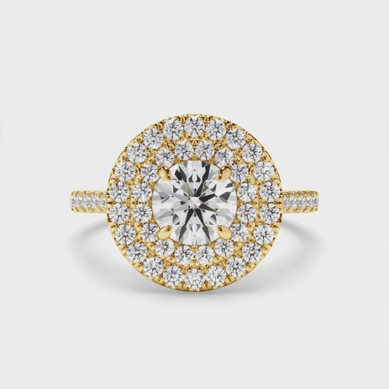 Round Brilliant Cut Diamond Double Halo Engagement Ring