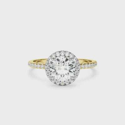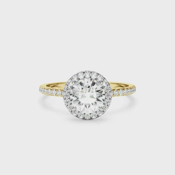 Round Brilliant Cut Diamond Halo Engagement Ring With Pave Band