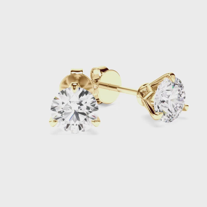 These stunning round brilliant cut diamond stud earrings, made with your choice of diamond centre stone, feature a 3-claw setting and butterfly post. Exuding fluidity in its line work, and boasting an elegant silhouette, as with all the pieces in our Bespoke Collection, this piece is made especially for you. Pictured here with a 1.00ct Round Brilliant Cut Diamond for each ear, the final price is determined following your centre stone selection.