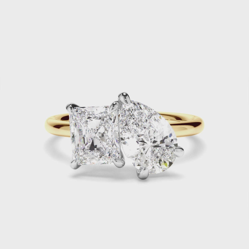 Radiant & Pear Cut Diamond Toi et Moi Engagement Ring